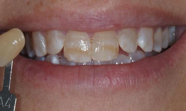 This lady had an important event coming up later in the year. She did the right thing and got in early to make an improvement in her smile. She was in her 40’s and felt her teeth had become more yellow. We are often asked, “Why have my teeth turned yellow?” As we age the nerve and pulp vessels can shrink as the dentine lays down more tooth structure. Sometimes this secondary dentine is quite dark. In addition, the enamel can have some signs of thinning. These factors and just some of the elements that contribute to the loss of ...