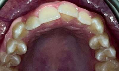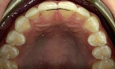 In her case, Dr Gourlay used 14 series of Invisalign aligners over 14 weeks to align her teeth into a more protected bite pattern. She then used composite bonding to restore the chipped edges. The patient has since moved on to using retainers at night to maintain and protect the position of the teeth.